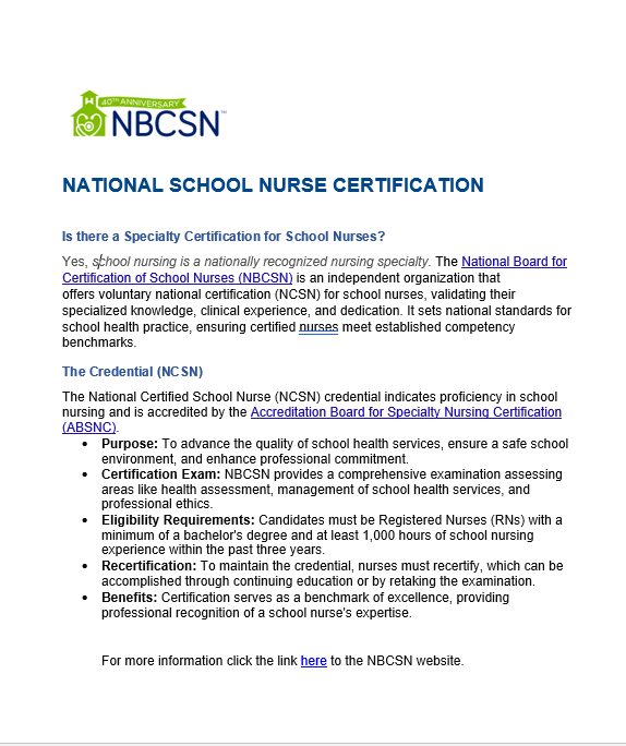 National School Nurse Certification